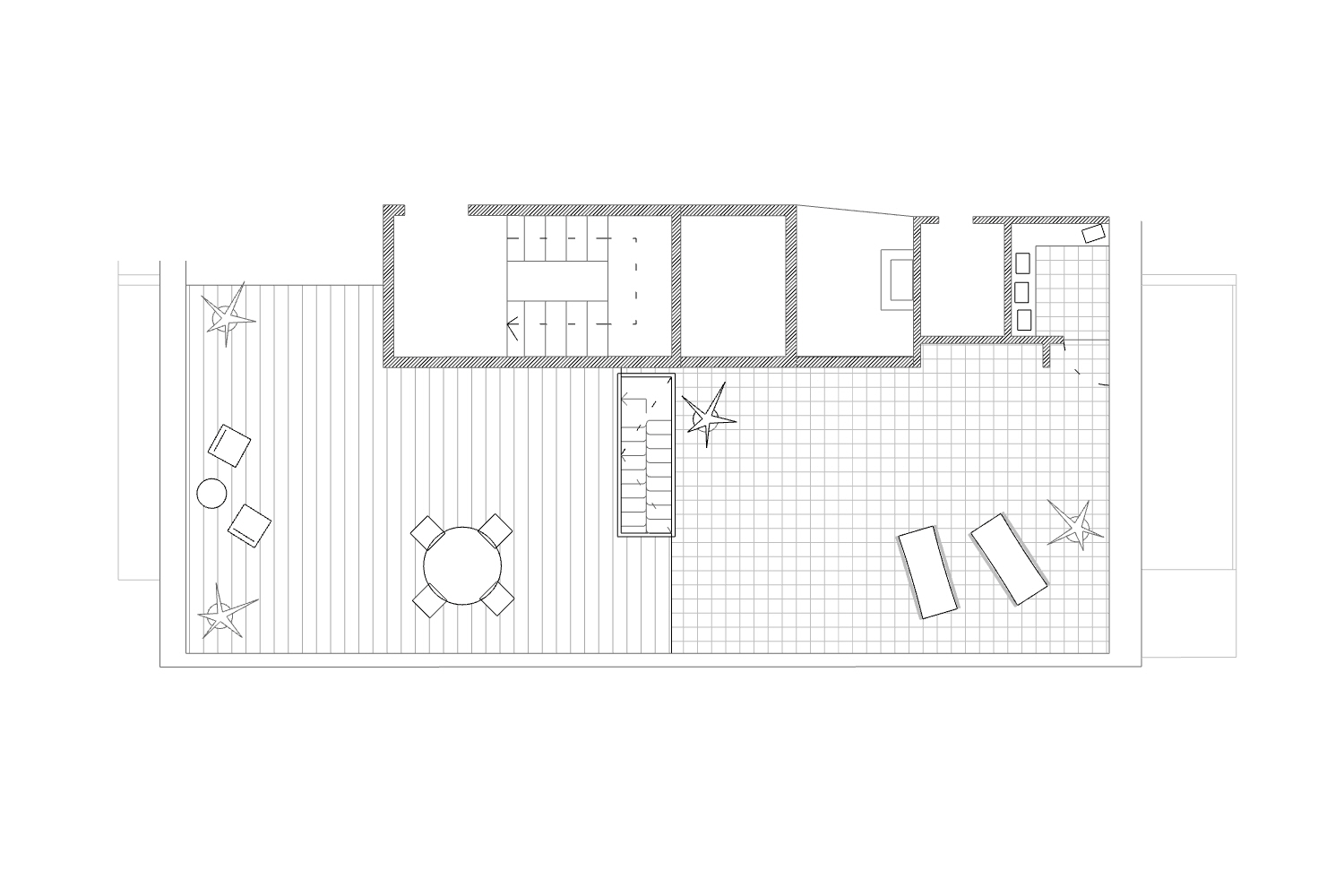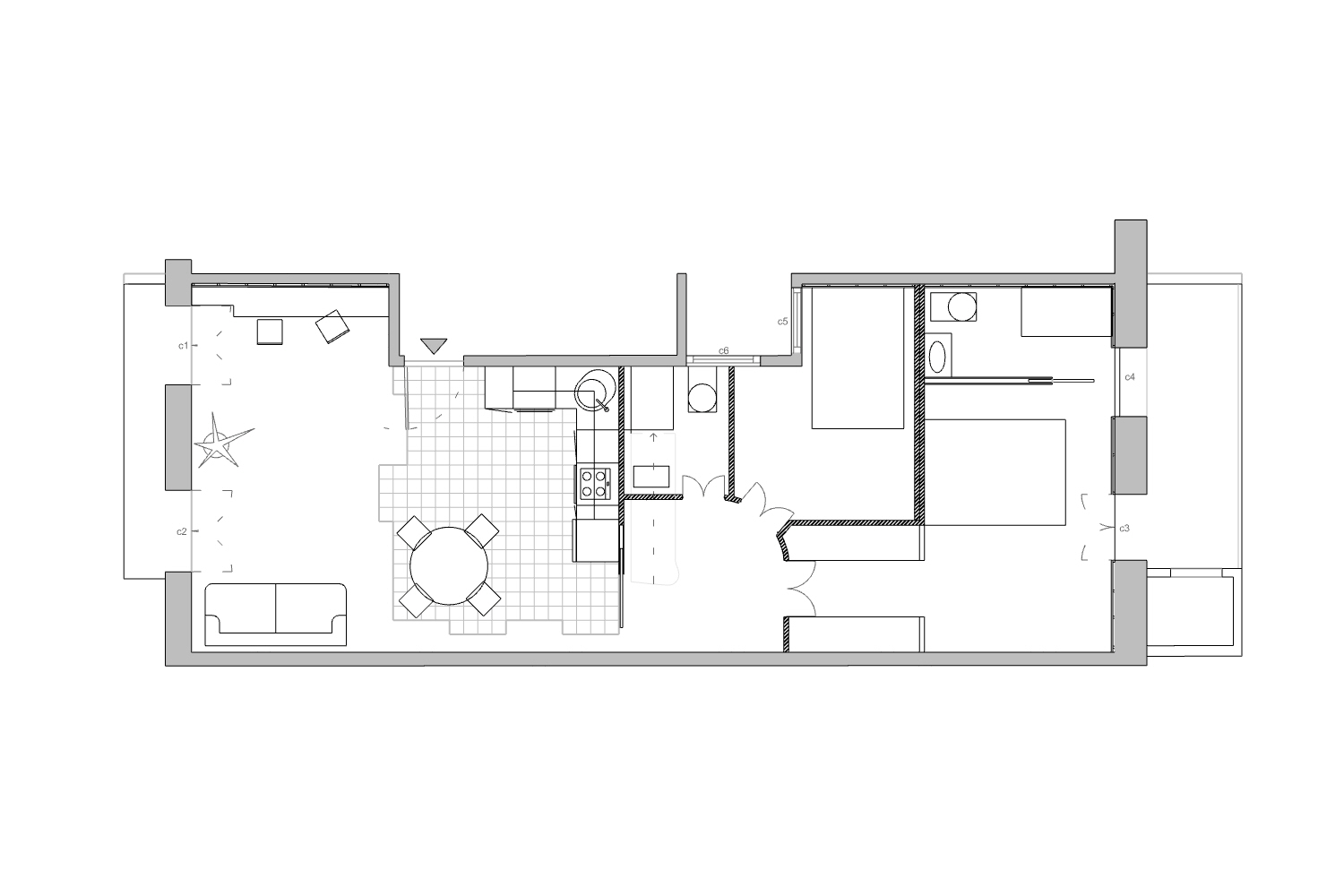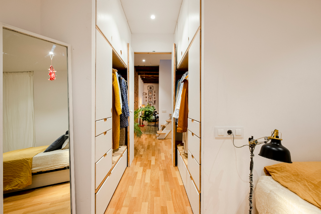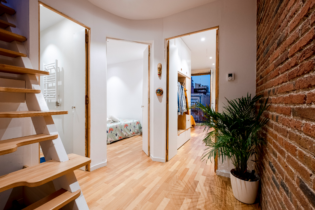 To do so it was decided to divide the flat into two parts on all fronts joined by a central staircase that would allow to flow from place to place freely and easily.